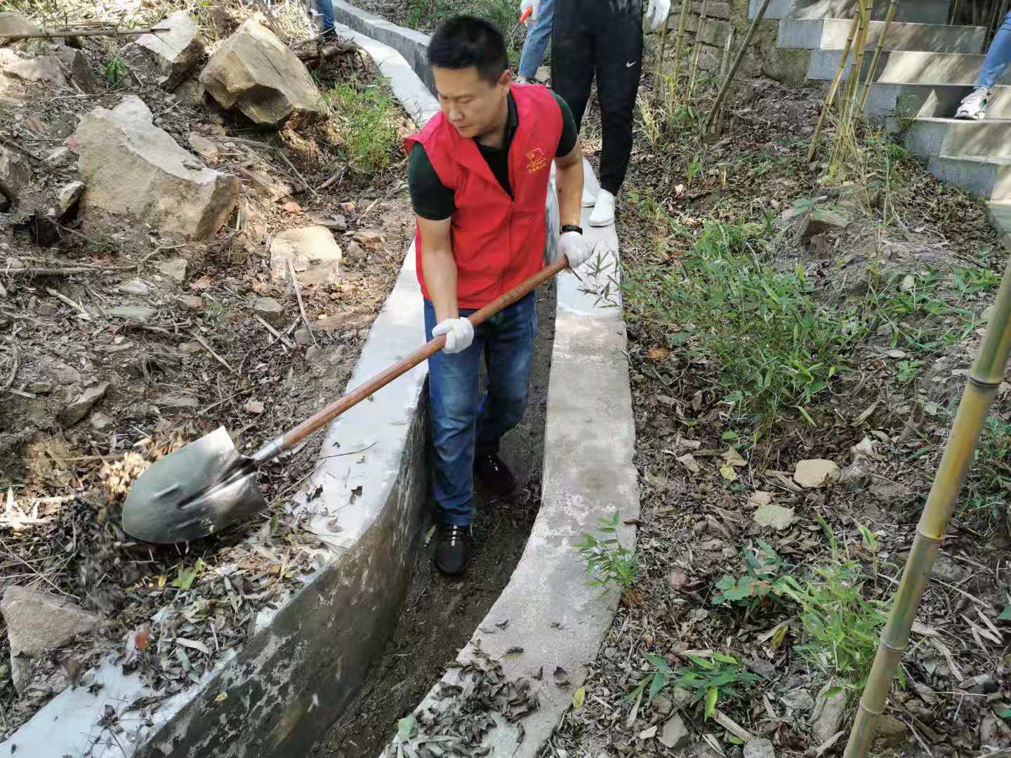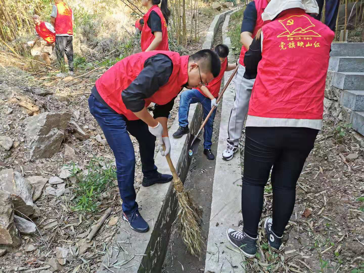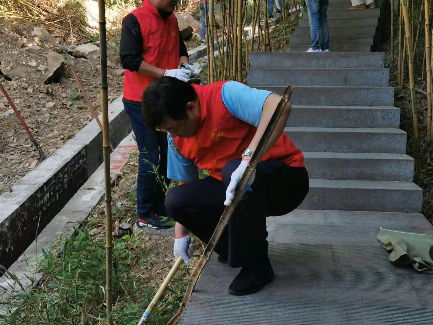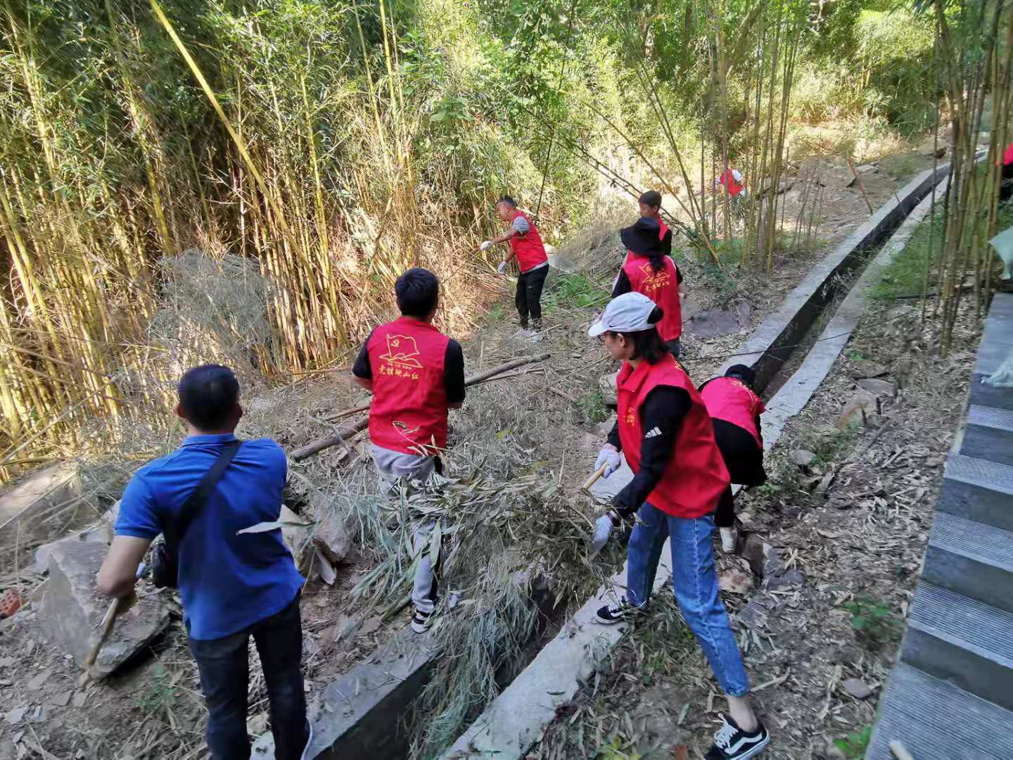 上午九點(diǎn),集團(tuán)全體人員到達(dá)潤(rùn)景公司項(xiàng)目現(xiàn)場(chǎng),兵分兩路,分別來(lái)到滑索和漂流項(xiàng)目沿線,開(kāi)展義務(wù)清掃工作。員工們抄起掃帚、鐮刀等清掃工具,有條不紊地分區(qū)域?qū)β访胬奥愤呎系K進(jìn)行了清理。