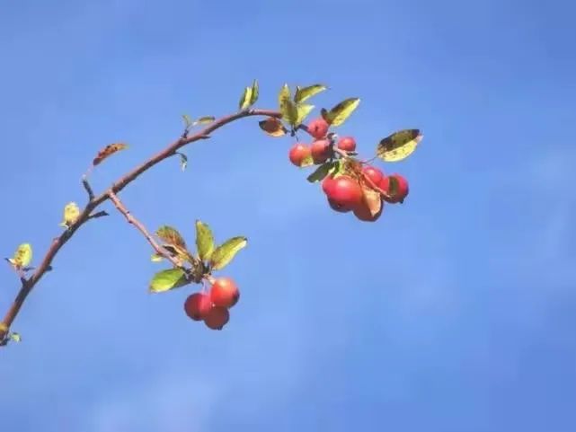 春賞花來(lái)冬看果,在連徐高速、環(huán)云臺(tái)山大道道路兩側(cè),如葡萄般大小的海棠果,或三四顆一簇,或五六粒一團(tuán),在初冬清晨的陽(yáng)光照耀下,一串串、一簇簇紅艷艷的海棠果綴滿枝頭,像密密麻麻的櫻桃,又像是小燈籠,分外妖嬈。一些原本干癟的果子,被鳥兒啄開后,讓已泛紅的果子更加艷麗,如同一朵朵梅花綻放在枝頭,讓人拍手稱奇。