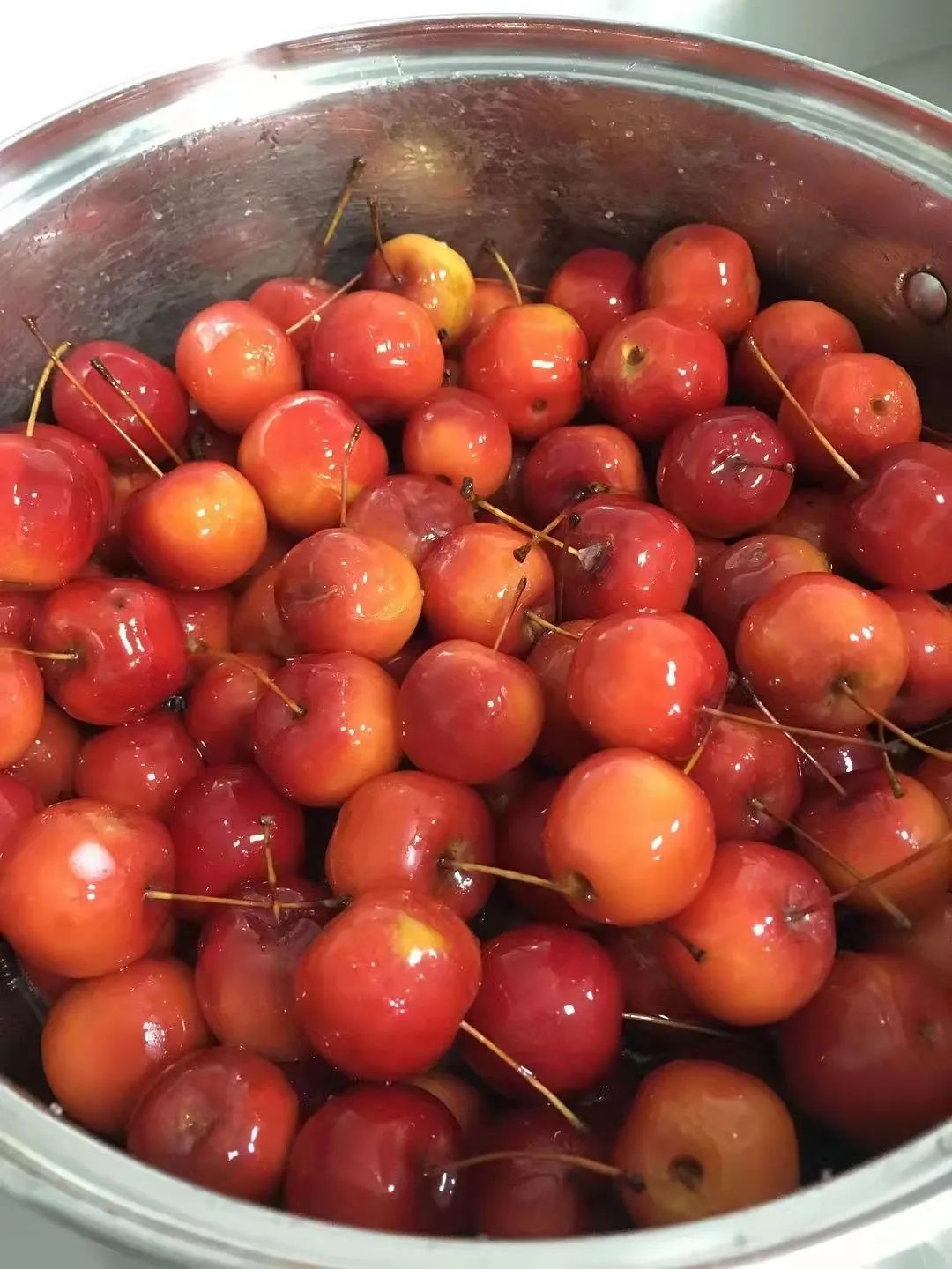 海棠果,又名楸子、海紅、紅海棠果、柰子,因?yàn)楣麑?shí)上有八道棱狀突起,又叫“八棱海棠”、“大八棱”,果皮色澤鮮紅奪目,果肉黃白色,果香馥郁,鮮食酸甜香脆,含有糖類、多種維生素以及有機(jī)酸,營(yíng)養(yǎng)價(jià)值可與獼猴桃媲美,以“百益之果”著稱,有生津止渴、健脾止瀉的功效??芍苯邮秤茫芍谱髅垧T,也可制作果醬。