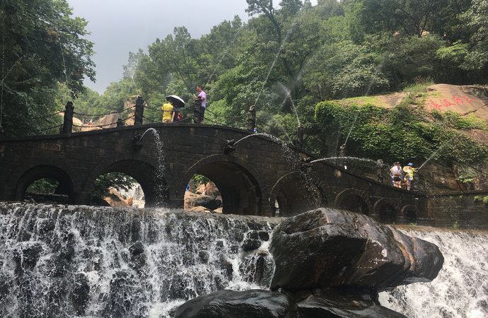 從市區(qū)的蘇欣客運站坐游3路去的,車子是空調公交有些老舊,出了市區(qū)穿行在郊區(qū)的道路上比較顛簸。因為不是節(jié)假日景區(qū)很清靜,門口有幾個攤位,大部分都沒有出攤。因為前一天下了中雨,看到了水流很大的瀑布、怪石、蟲子,景區(qū)基本就是沿著一條山溝的左側展開,逐步盤桓上升,曲折蜿蜒,山頂是一個小水庫,估計是為了保持平時的景區(qū)供水。穿過水壩上的過水道就來到右側的下山道路。下上就沒有太多景色,只能遠眺下山下田野。山不太大,不太累,山水都很迷你。景區(qū)維護的衛(wèi)生狀況不錯,山下小吃電價位也算合理。